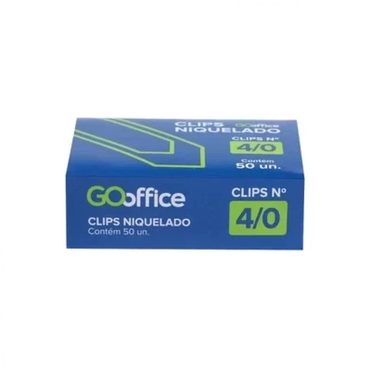 Clipes Niquelado para Papéis Go Office N°4/0 Cx 50un