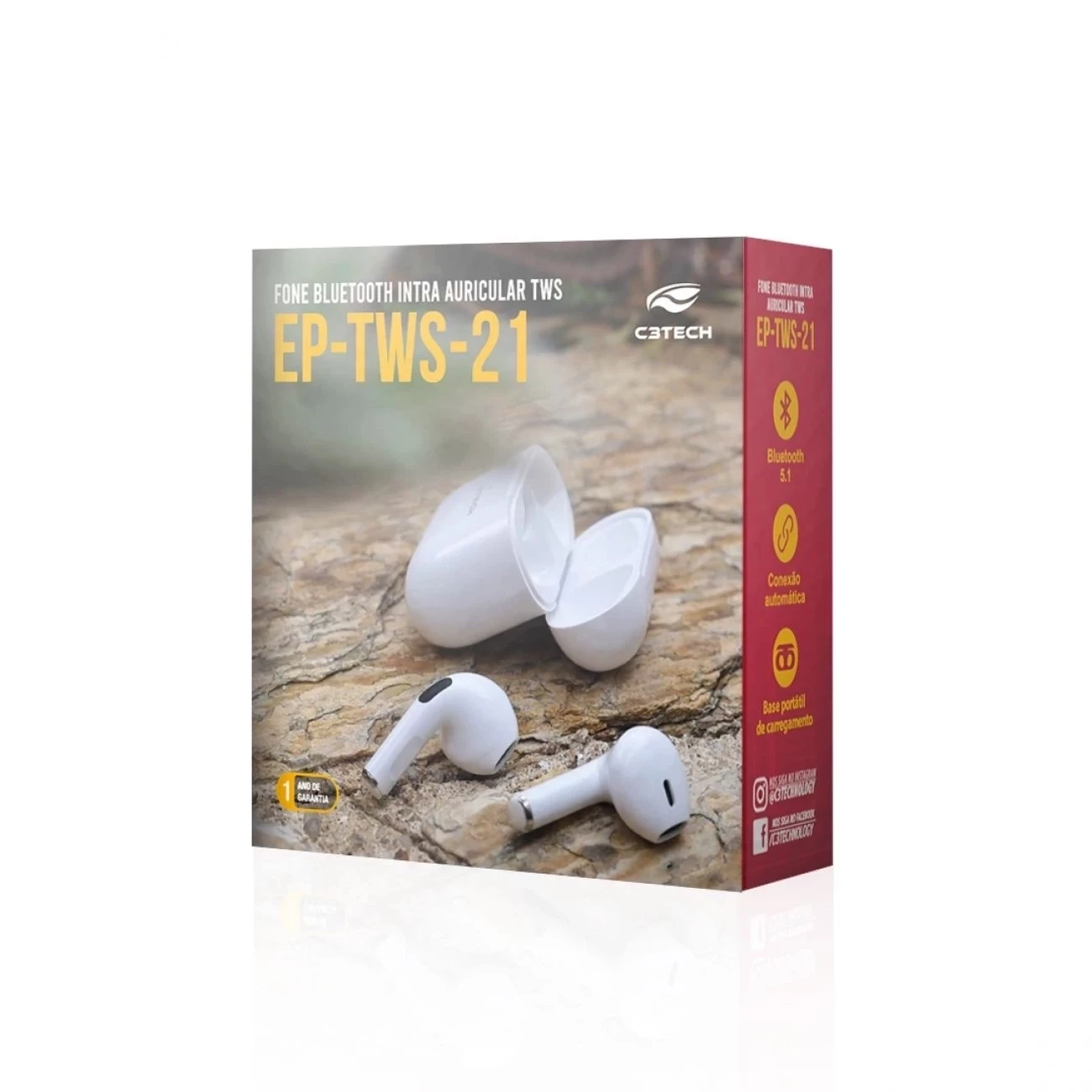 Fone de Ouvido Ep-tws-21wh Bluetooth 5.1 C3tech