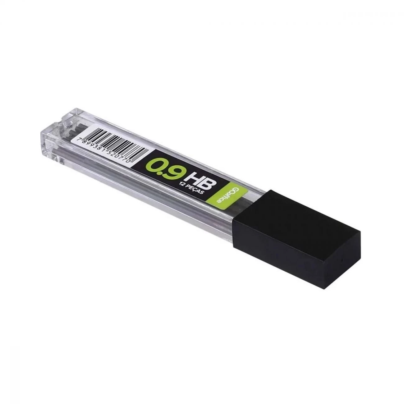 Grafite HB, específico para o uso nas lapiseiras 0.9, possui comprimento de 60mm, é resistente e proporciona traços firmes. Embalagem transparente de fácil manuseio, com 12 minas de grafite.