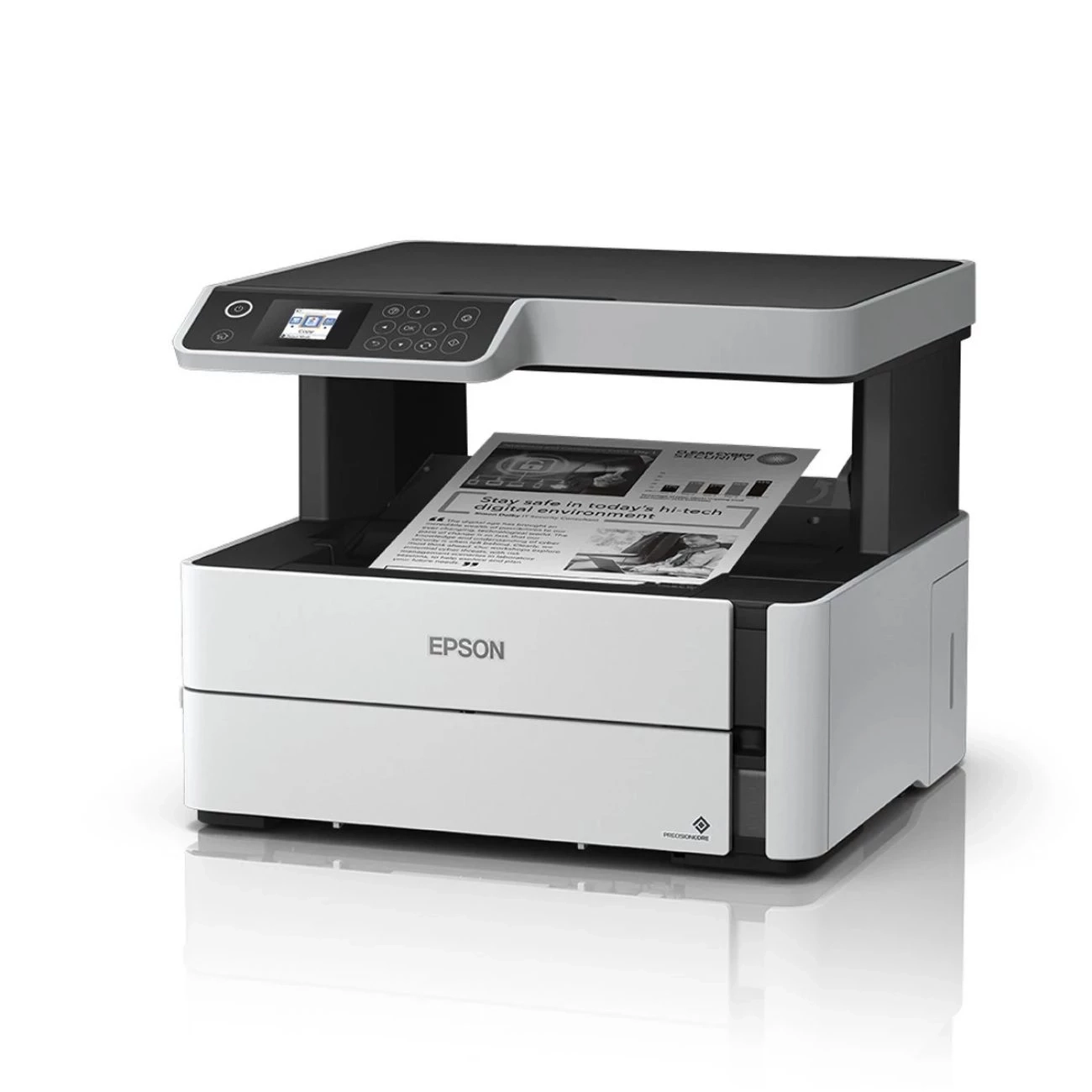 Especificações:Tecnologia de ImpressãoJato de tinta PrecisionCore® monocromática otimizadaTamanho mínimo de gotícula de tinta2,8 picolitrosResolução máxima de impressão1200 x 2400 dpiVelocidade de impressão39 ppm em preto (rascunho /A4 /carta)Velocidade de impressão ISO20 ppm em preto (A4/ carta)Velocidade de impressão duplex9 ppm (A4/ carta)Configuração de jato800 injetores pretosCópiaVelocidade de cópia: 0 cpm em preto (rascunho /A4 /carta)Velocidade de cópia ISO17 cpm em preto (A4/ carta)Qualidade de cópiaTexto e imagem em até 600 dpi x 600 dpi, em papel normalQuantidade de cópias1-99 cópias (sem PC)Tamanho máximo da cópiaA4 / CartaCaracterísticas de cópiaReduz e aumenta (25% - 400%)Tipo de scanneBase plana com sensor colorido de linhas CISResolução óptica1200 dpiResolução interpolada1200 x 2400 dpiProfundidade de bit de cor48 bitÁrea máxima de digitalização21,6 cm x 29,7 cmTamanhos de papelA4, A6, Carta, Meia Carta, Legal, Executivo, Oficio 9, definido pelo usuário (89 x 127 mm - 215,9 x 1200 mm); Envelopes #10Tamanho máximo do papelLegal (216 mm x 356 mm)Tipos de papelComum, papel revestido Epson, papel fosco, papel brilhante, semi brilhante e auto-adesivoGramatura máxima do papelPapel normal: 64 ~ 90 g/m²; papel grosso: 91 ~ 256 g/m²Capacidade de entrada de papel250 folhas de papel A4Capacidade de bandeja de saída100 folhas de papel A4Conectividade padrãoUSB 2.0 Hi-Speed, Wi-Fi (802.11 b/g/n), Wi-Fi-Direct®2, Ethernet 10/100 MbpsProtocolos de impressão em redeTCP/IPv4/IPv6 y SNMP, HTTP, DHCP, BOOTP, APIPA, PNG, DDNS, mDNS, SLP, WSD, LLTDSegurança WLANWEP (64-bit-128 bit), WPA-PSK (TKIP), WPA2-PSK (AES)Visor LCD1.44"Linguagem da impressoraESC/P Raster e ESC/P-R (sem PC)Ciclo de trabalho mensal250 - 1.500 páginas (recomendado); Até 20.000 páginas (máximo)OpçõesImpressão frente e verso automática, intercalar, modo silencioso de impressão