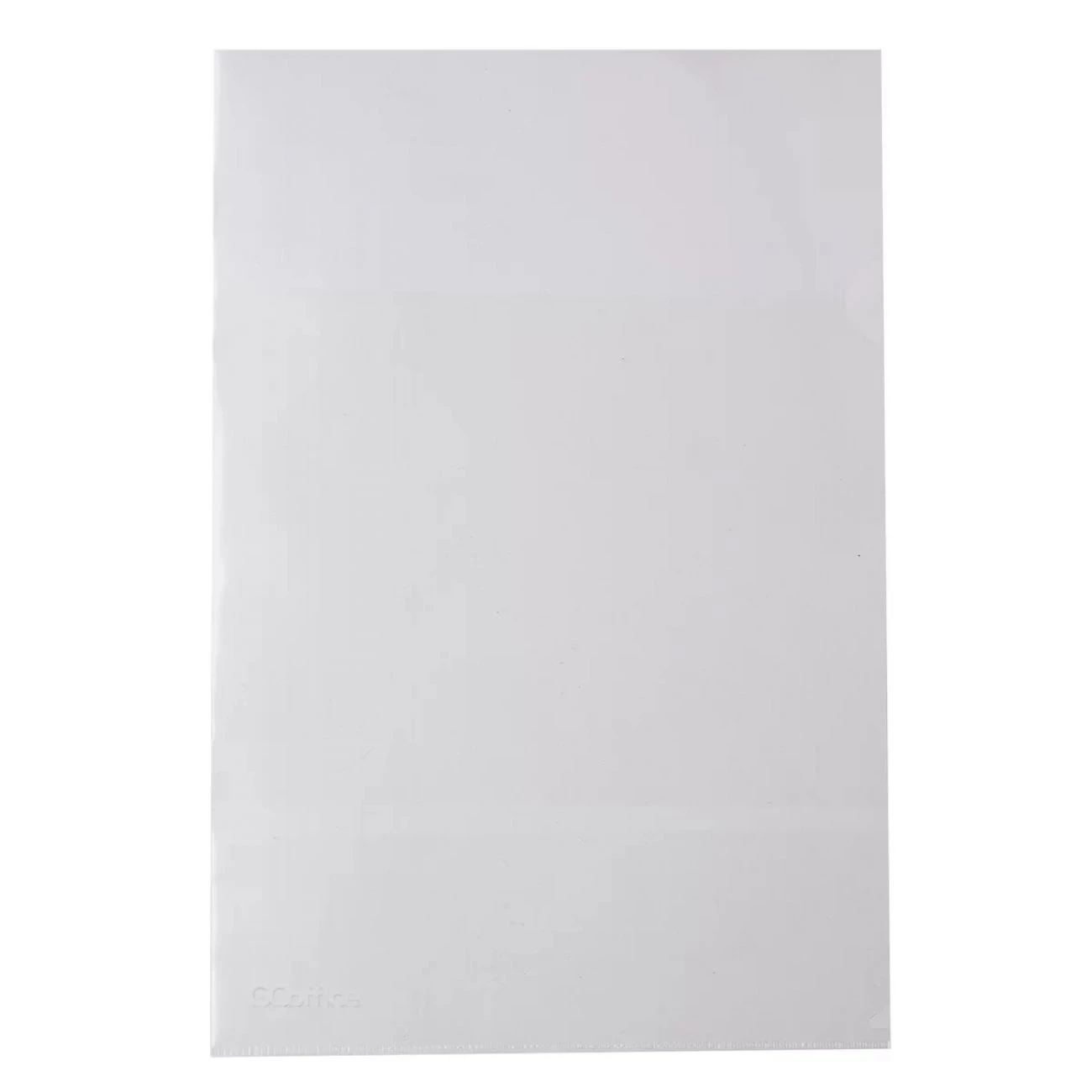 Pasta L cristal em tamanho Ofício fabricada em polipropileno flexível, ideal para o transporte e armazenamento de documentos.