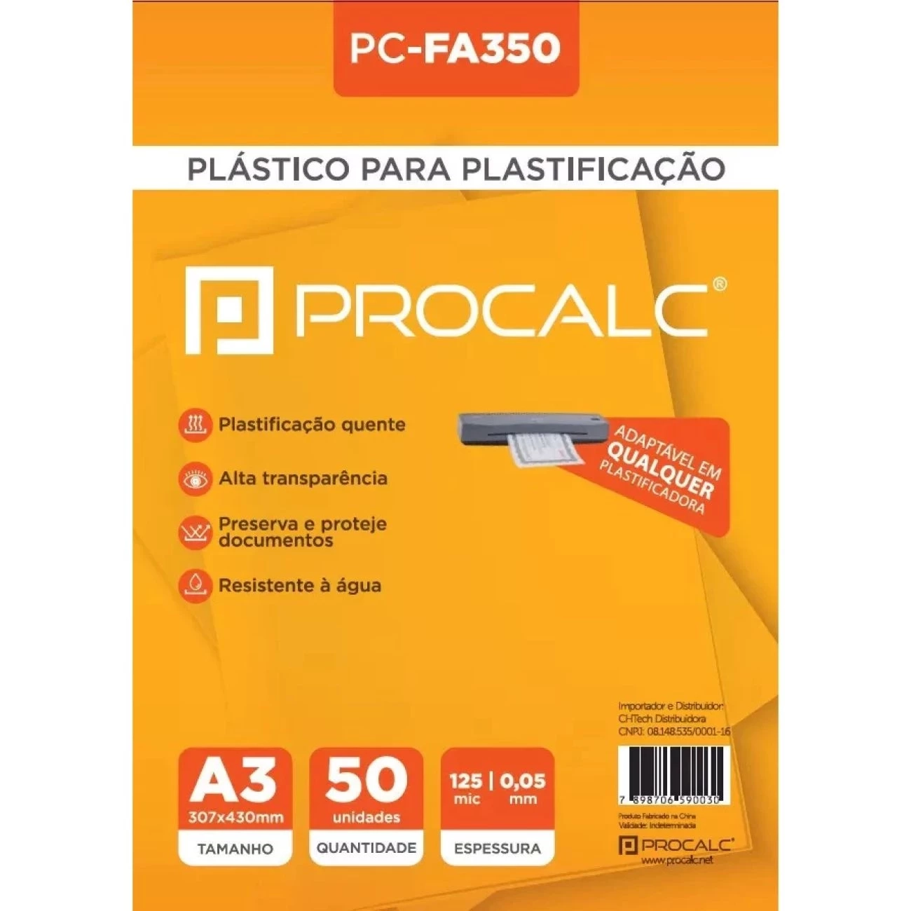 Plástico Filme para Plastificação A3 307x430 com 50 Unidades Procalc